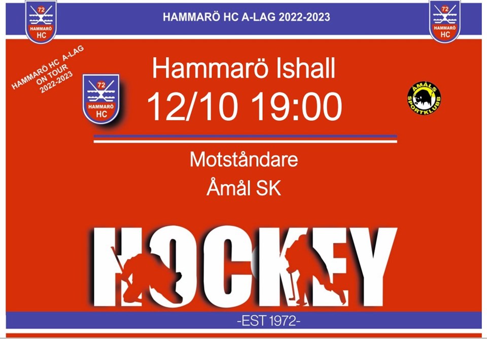 Imorgon onsdag 12/10 19.00 har Hammarö HC´s A-lag hemmapremiär i Div 2. För motståndet står Åmål SK. Välkomna till Hammarö Ishall!